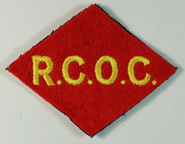 This is a WW2 British made embroidered felt Formation Sign Badge to the 1st Canadian Corps / R.C.O.C. – Royal Canadian Ordnance Corps (like Jon Mills BoBD 1976) in excellent unworn condition.