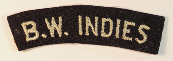 This is a scarce WW2 embroidered cloth Nationality shoulder title badge to B.W.INDIES. – British West Indies serving with the R.A.F. The badge in excellent unworn condition.