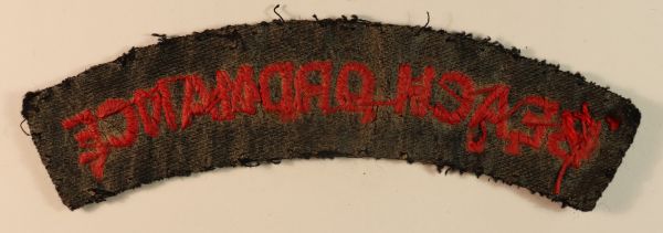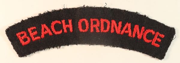 This is a rare WW2 embroidered felt shoulder title badge to the BEACH ORDNANCE (Jon Mills BoBD 3088) in excellent worn condition.