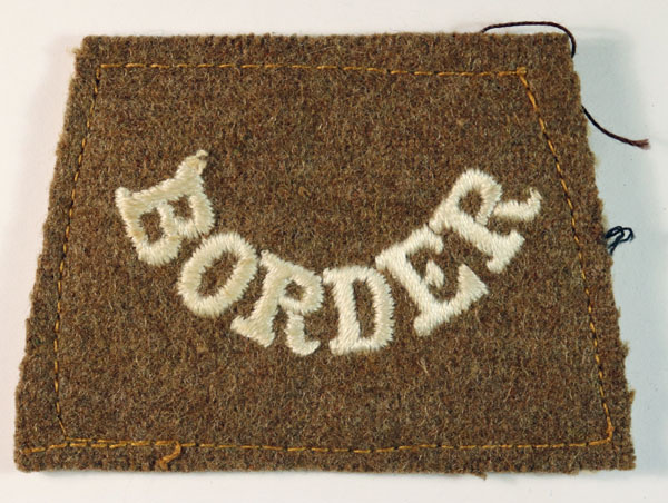 This is a scarce WW1 slip-on embroidered cloth shoulder title badge to the BORDER – Border Regiment. In excellent worn condition. The badge measures 73mm by 51mm.
