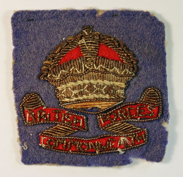This is an Australian made bullion embroidered felt Formation Sign Badge to the BRITISH COMMONWEALTH OCCUPATION FORCE, JAPAN (Jon Mills BoBD 3810) in excellent worn condition.bThe badge was in use from March 1946.