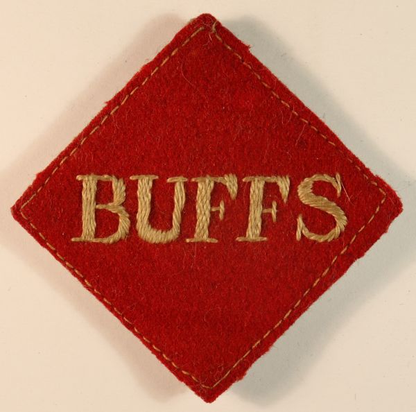 This is a scarce WW2 embroidered felt Pagri Flash badge to the BUFFS – Royal East Kent Regiment in excellent worn condition and complete with 4 fixing press studs to the rear.