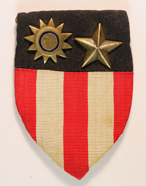 This is a WW2 metal on cloth formation sign badge to the CHINA, INDIA, BURMA THEATRE in excellent worn condition and complete with 3 fixing studs to the rear. British or possibly Indian made. The sun and star are both white-metal.