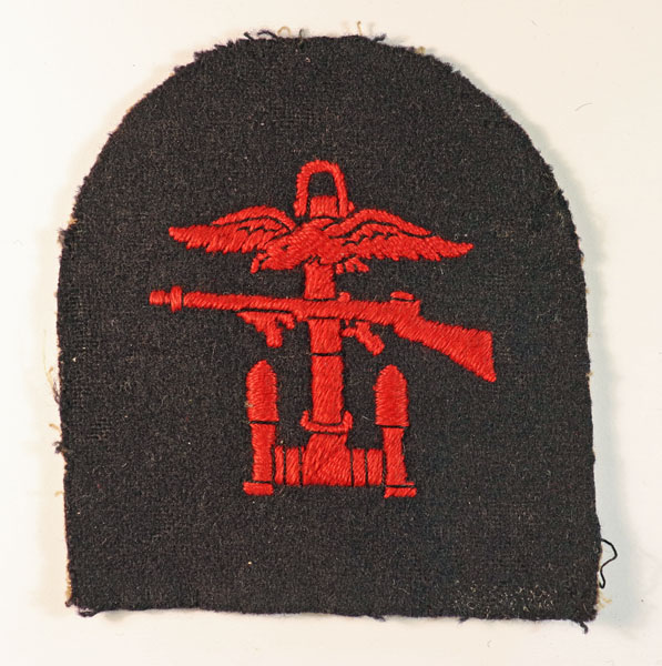This is a WW2 embroidered felt formation sign badge to COMBINED OPERATIONS – Royal Navy/Royal Marines (Jon Mills BoBD 2073) in excellent worn condition.