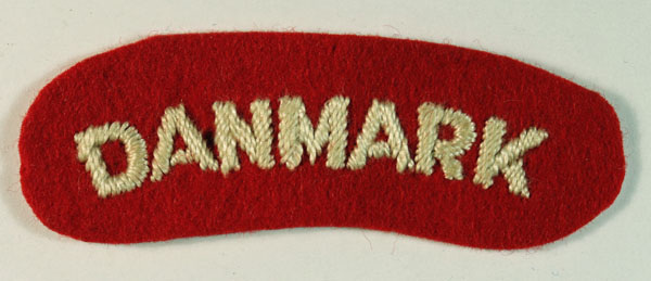This is a WW2 embroidered felt shoulder title badge to DANMARK – Free Danish Forces (Jon Mills BoBD 1310) in excellent unworn condition.