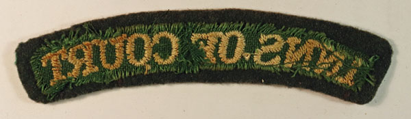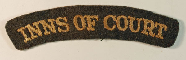 This is a scarce WW2 embroidered felt shoulder title badge to the INNS OF COURT Regiment – Serifs (Jon Mills BoBD 1469) in excellent worn condition.