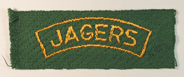 This is a scarce WW2 Brabant weave cloth shoulder title badge to the JAGERS – Free Dutch Forces in use from 6th September 1944. The badge is in excellent worn condition and measures 102mm by 36mm.