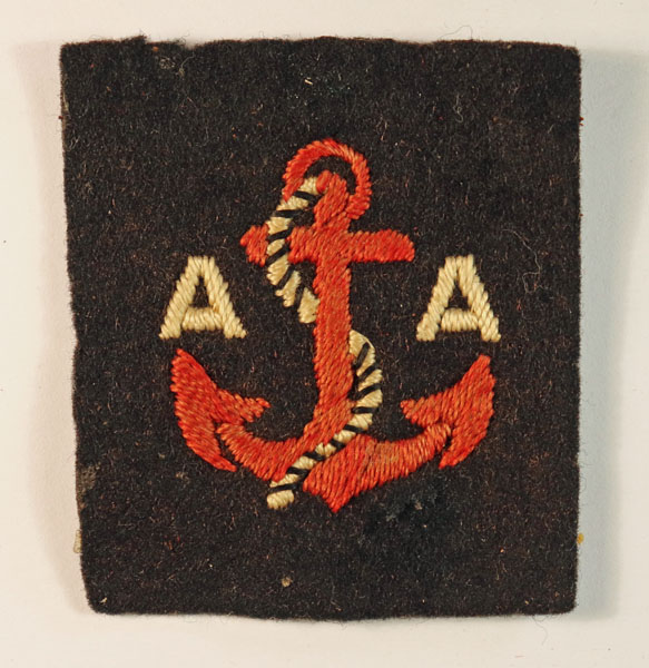 This is a WW2 embroidered felt formation sign badge to the MARITIME ANTI-AIRCRAFT ARTILLERY – 1st Pattern (Jon Mills BoBD 1274) in excellent worn condition.