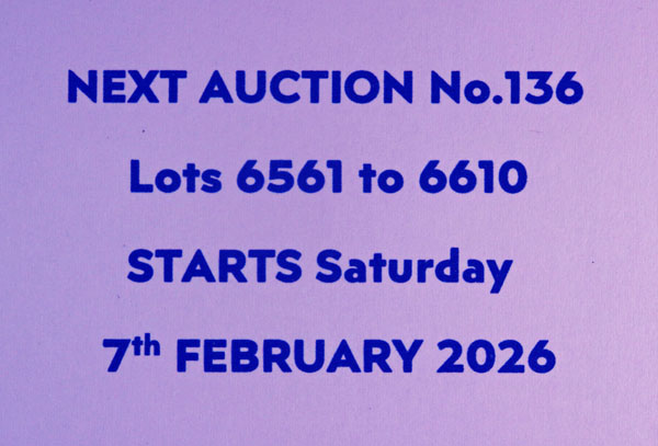 NEXT AUCTION No. 136 – STARTS ON SATURDAY 7th FEBRUARY 2026
