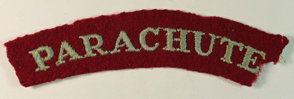 This is a WW2 embroidered felt shoulder title badge to PARACHUTE (Jon Mills BoBD 2178) in Serifs. The badge is in good worn condition.