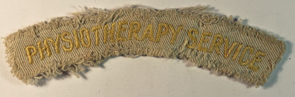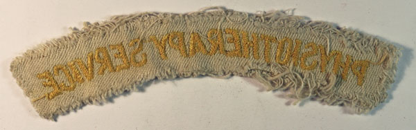 This is a scarce tropical dress variant WW2 embroidered felt shoulder title badge to the PHYSIOTHERAPY SERVICE (Like Jon Mills BoBD 1173). The badge in excellent worn condition.