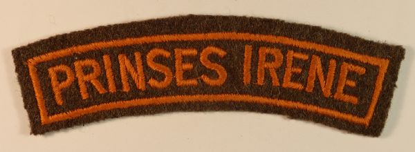 This is a scarce British Made WW2 embroidered felt shoulder title badge to the PRINSES IRENE Brigade (Like Jon Mills BoBD 1326) in excellent worn condition. Approved by Ministerial Order of 22 December 1941. The British made badges have no full stop after the word IRENE