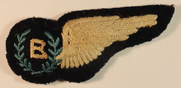 This is a WW2 padded embroidered felt Half-Brevet badge to an R.A.A.F. – Bomb Aimer – Royal Australian Air Force. The badge is in excellent worn condition and measures 83mm by 34mm.