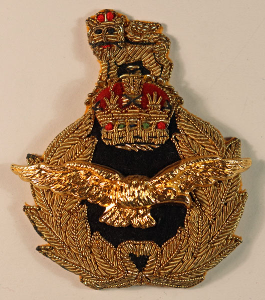 This is a WW2 padded bullion embroidered cap badge to a Royal Air Force Air Officer. The badge is in excellent unworn condition.