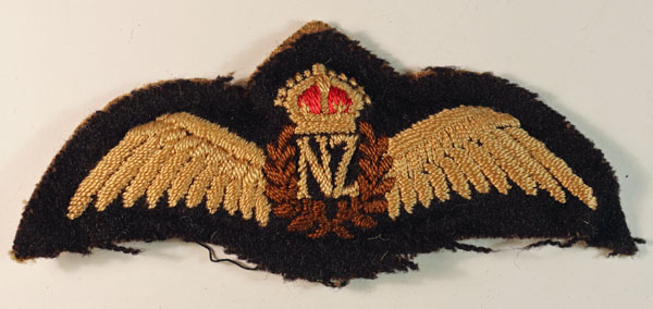 This is a WW2 padded embroidered felt Wings Brevet badge to an R.N.Z.A.F. – Royal New Zealand Air Force Pilot. The badge is in excellent worn condition and measures 120mm by 48mm.