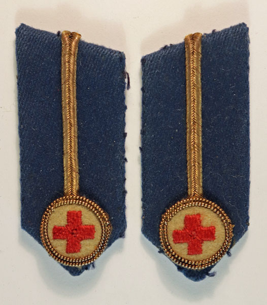 This is a WW2 pair of Gorget Badges as worn by Red Cross County & Divisional Lady Superintendants and Assistant County Directors in 1940 in excellent worn condition. The badges are bullion embroidered and each measures 65mm by 30mm.