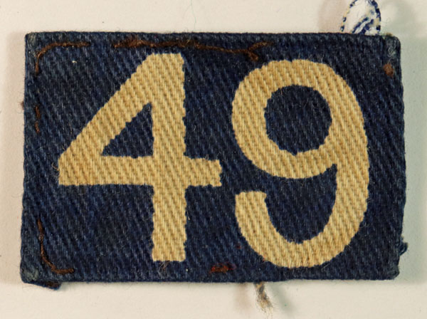 This is a WW2 printed cloth formation sign badge to the ROYAL ENGINEERS (49) Senior Field Company in an Infantry Division (Jon Mills BoBD 833). The badge is in excellent worn condition and was made by “Calico Printers”.