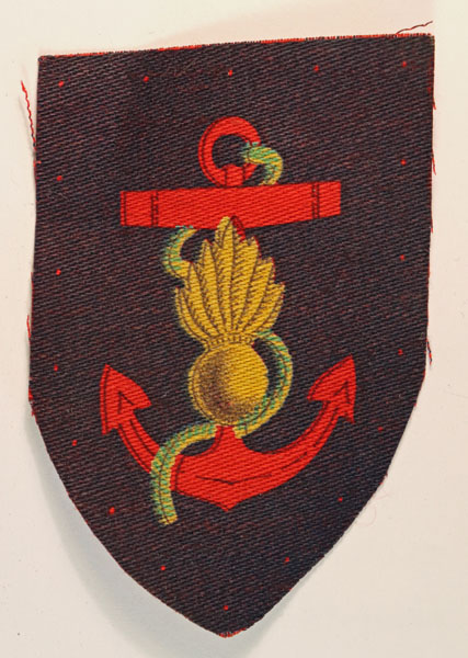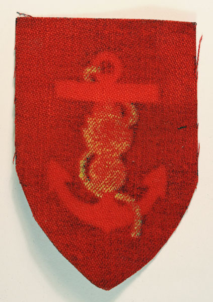 This is a scarce WW2 printed cloth formation sign badge to the ROYAL MARINE ENGINEERS (Jon Mills BoBD 2322) in excellent  unworn condition. The badge was made by “Calico Printers”.