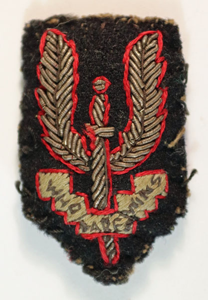 This is a scarce WW2 Officer’s bullion embroidered felt cap/beret badge to the S.A.S. (Special Air Service)(KK 2063). The badge is in excellent worn condition.