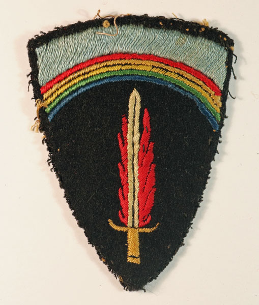 This is a WW2 British made embroidered felt formation sign badge to the S.H.A.E.F. Supreme Headquarters Allied Expeditionary Force (Jon Mills BoBD 3045). The badge is in excellent worn condition.