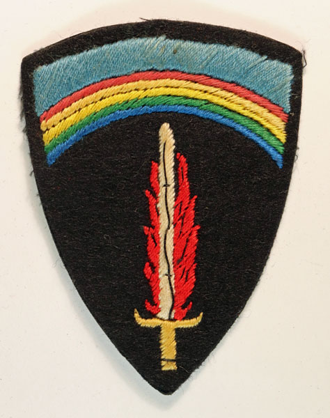 This is a WW2 British made embroidered felt formation sign badge to the S.H.A.E.F. Supreme Headquarters Allied Expeditionary Force (Jon Mills BoBD 3045). The badge is in excellent worn condition.