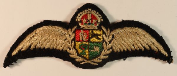 South African Air Force WW2 Padded Embroidered Pilot’s Wings Badge — Lot No. 6705