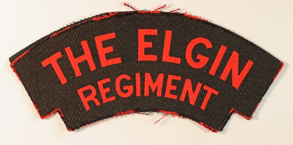 This is a scarce WW2 British made Canadian printed cloth Shoulder Title badge to the THE ELGIN / REGIMENT – 25th Armoured Delivery Regiment (Jon Mills BoBD 3245) in excellent unworn condition.