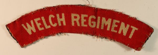 WELCH REGIMENT WW2 Printed Shoulder Title Badge – CALICO PRINTERS — Lot No. 6708