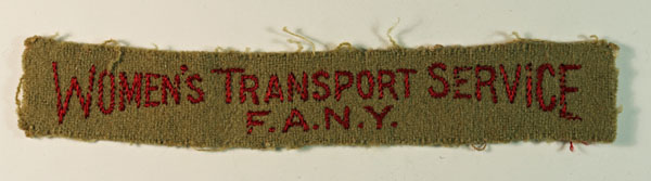 This is a WW2 embroidered cloth shoulder title badge to the WOMEN’S TRANSPORT SERVICE / F.A.N.Y. (Jon Mills BoBD 1733). The badge is in excellent worn condition.